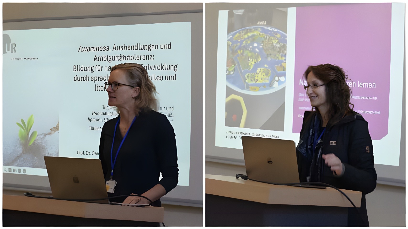 Sempozyumun ikinci günündeki ana oturum konuşmaları, Prof. Dr. Carola Surkamp’ın farkındalık, müzakereler ve belirsizlik toleransı – dil, kültür ve edebiyat eğitimi yoluyla sürdürülebilir gelişme için eğitim konulu “Awareness, Aushandlungen und Ambiguitätstoleranz – Bildung für nachhaltige Entwicklung durch sprachliche, kulturelle und literarische Bildung” başlıklı sunumuyla başladı, ardından Dr. Zuzana Münch-Manková’nın sürdürülebilirliği öğretmeyi öğrenmek: Yabancı dil olarak Almanca öğretimi bağlamında sürdürülebilir kalkınma yeterliliklerine ulaşım için dünya iklim oyunun ele alındığı “Nachhaltigkeit lehren lernen: Das Weltklimaspiel als Zugang zu BNE-Kompetenzen im DaF-Kontext” başlıklı sunumuyla tamamlandı.